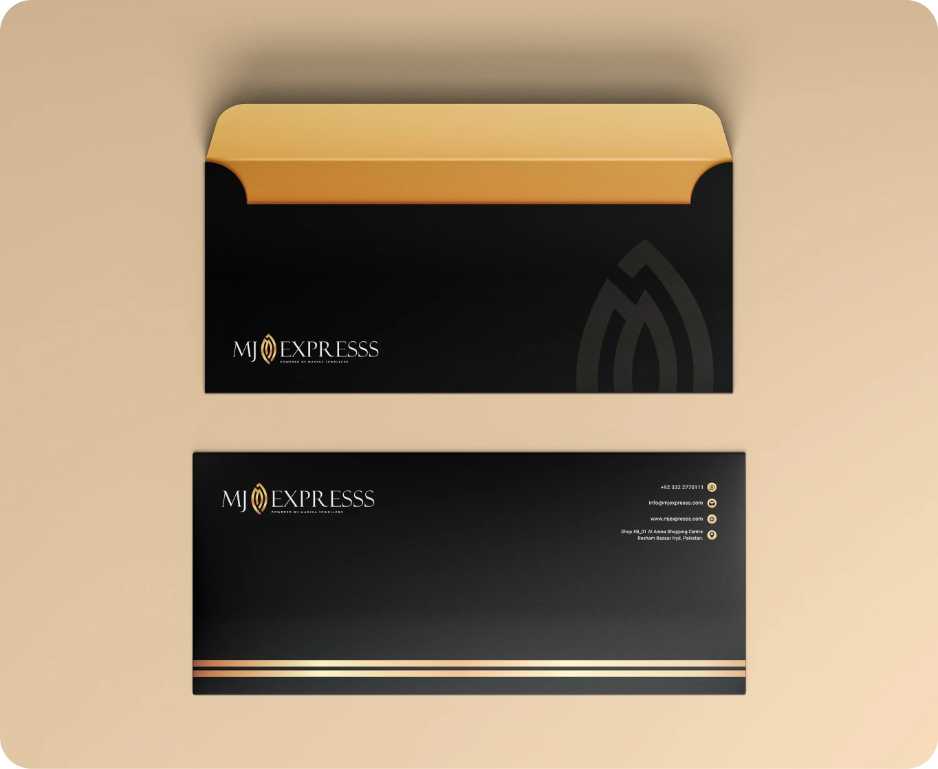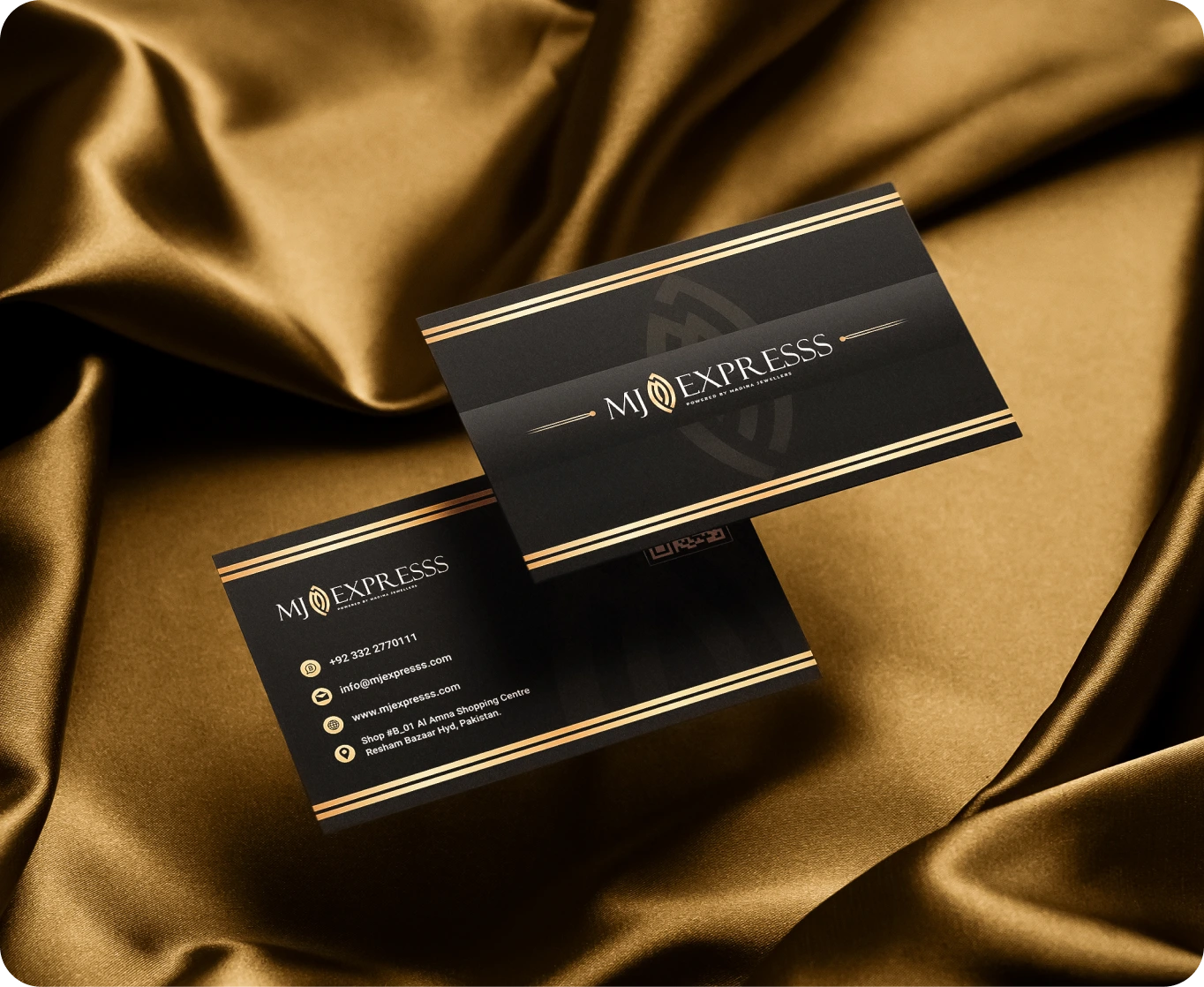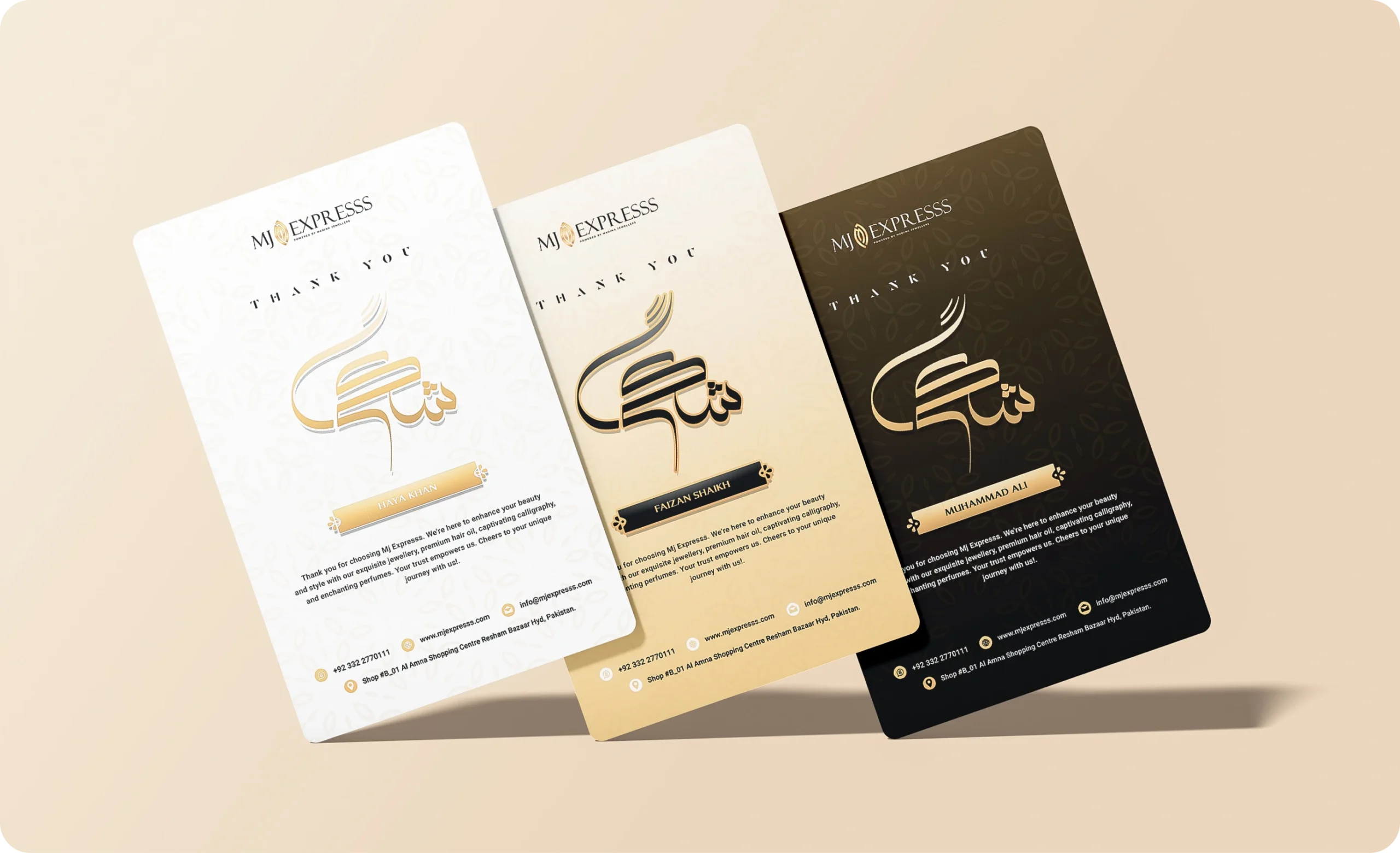 The stationery system was designed to extend the brand’s premium look across business cards, packaging inserts, and printed materials.