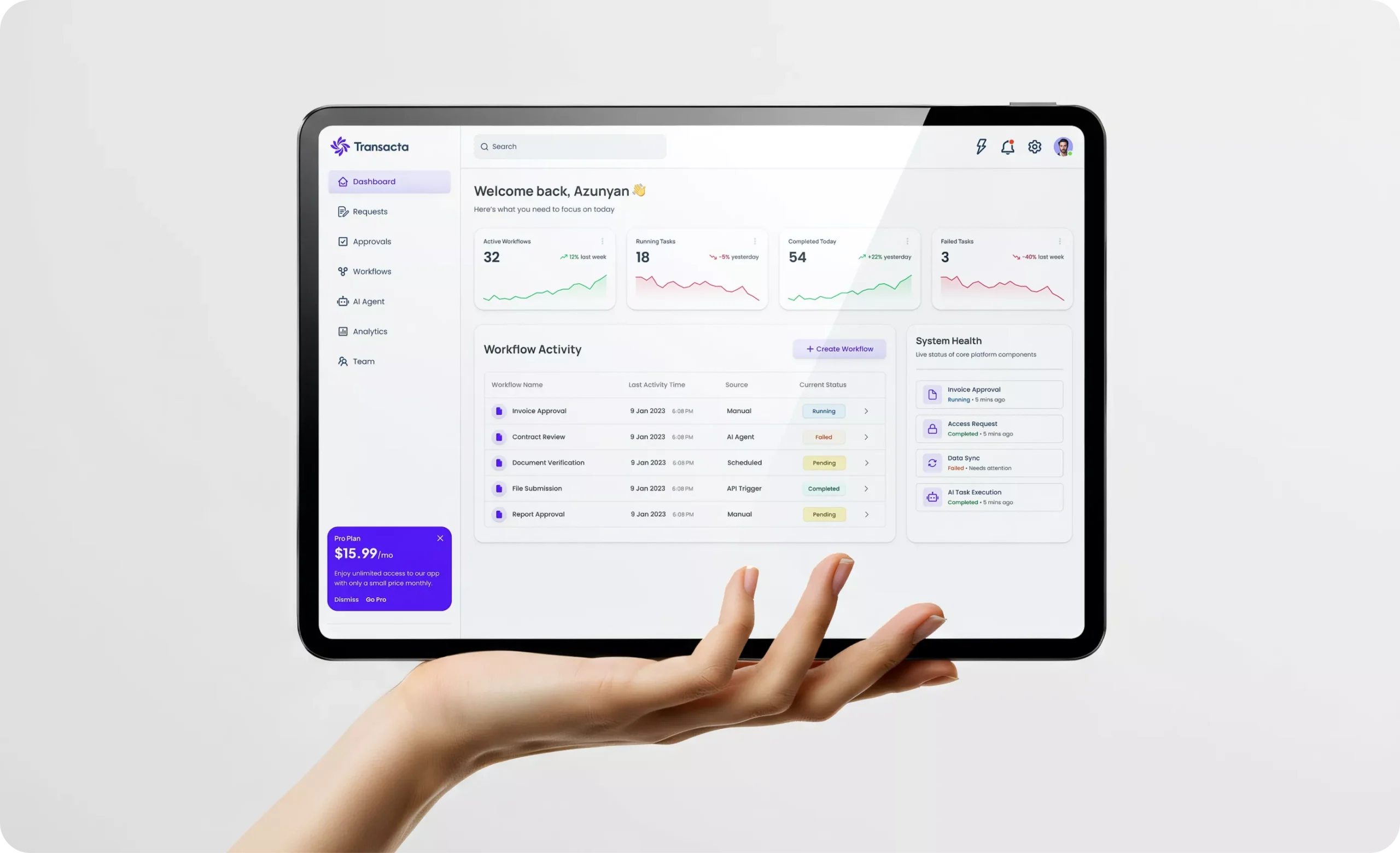 Transacta is a B2B SaaS platform designed to streamline business transactions through clarity, efficiency, and structured workflows.